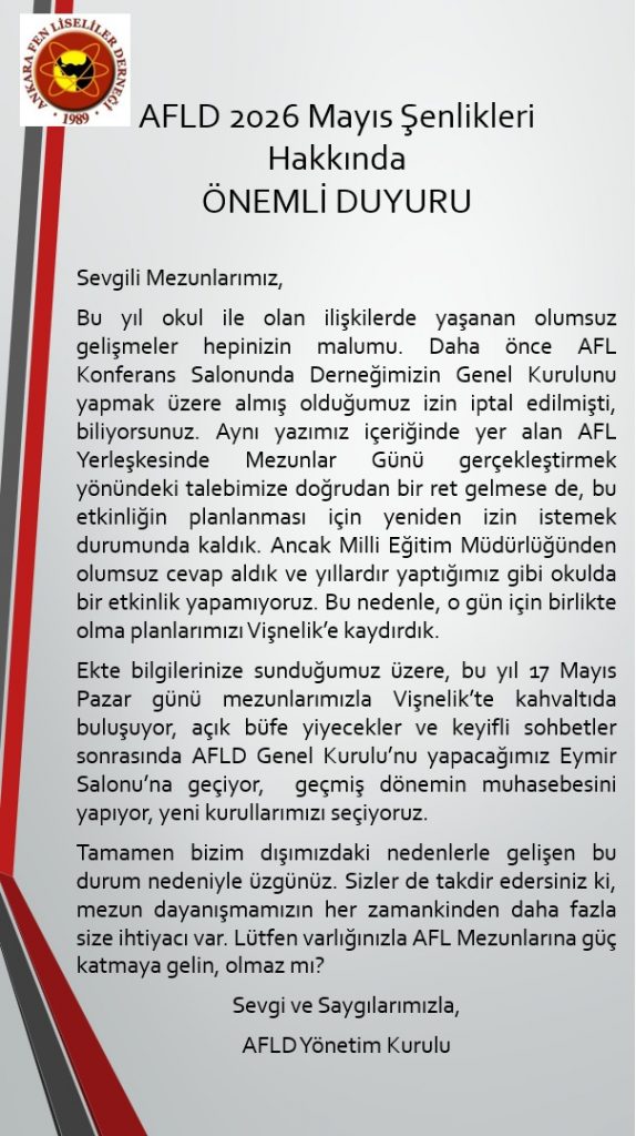 Sevgili Ankara Fen Liseliler,